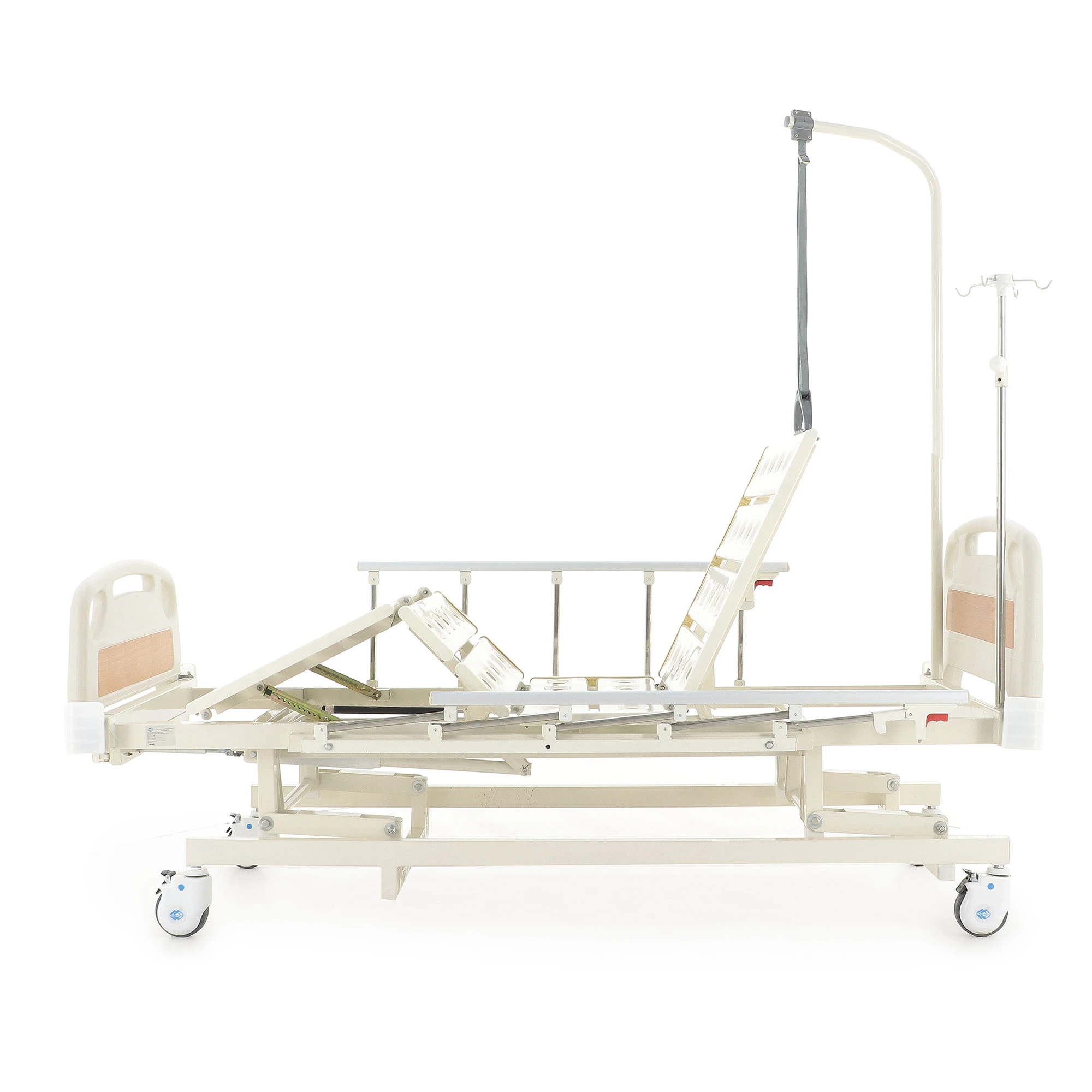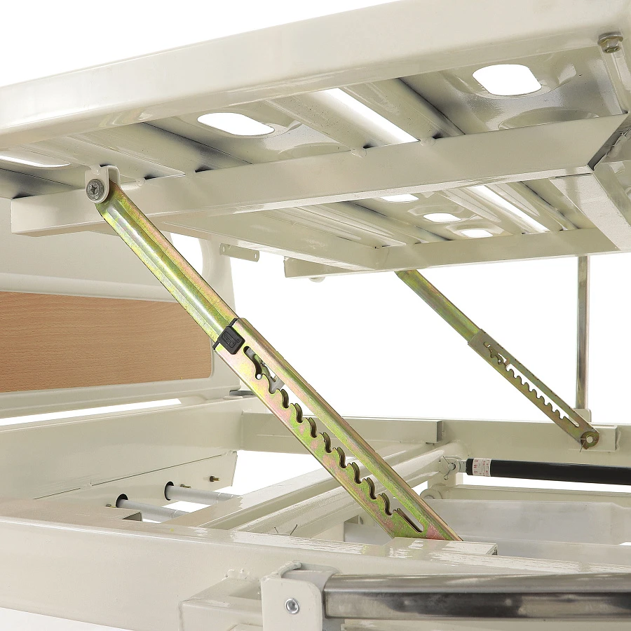 Каркас и 4-секционное ложе изготовлено из прочной стали, окрашенной эпоксидной эмалью. Это позволяет им быть максимально устойчивыми не только к коррозийным процессам, но и к воздействию агрессивных дезинфицирующих средств. Тем самым это гарантирует, что больному не грозят никакие посторонние микробы.