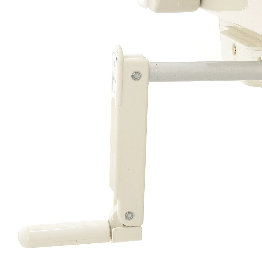 Кровать медицинская функциональная механическая E-31 (ММ-3024Н-00) оснащена ростоматом для регулировки высоты (33,5-78,5 см) и винтовыми механизмами для управления углом наклона головной и ножной секций ложемента (75 и 45 градусов соответственно).