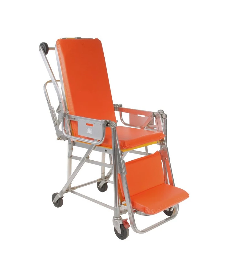Функция сгибания до сидячего положения позволяет медицинскому персоналу легко и быстро адаптировать позу пациента в зависимости от его состояния. Сидячее положение может быть крайне важно для пациентов с респираторными проблемами или болезнями сердца, когда необходимо облегчить дыхание. Возможность изменения позиции также упрощает процесс посадки и высадки из автомобиля, что особенно актуально в экстренных ситуациях, когда каждая секунда на счету.Каталка имеет удобную и продуманную конструкцию, что делает ее использование максимально простым и эффективным. Специально разработанные механизмы позволяют медицинскому персоналу легко управлять устройством даже в сложных условиях. Широкие колеса обеспечивают хорошую маневренность на любом покрытии.