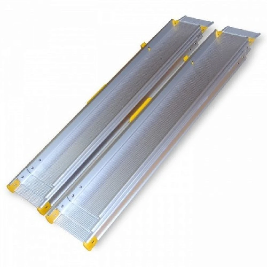 Пандусы алюминиевые, секционной конструкции – 3 секции. Снабжены противоскользящим рифлением. Предназначены для удобства передвижения инвалидов на креслах-колясках как в помещениях, так и на улице. Поставляются парами. Снабжены фиксатором в сложенном и разложенном виде. Пандусы алюминиевые не подлежат обязательной сертификации.