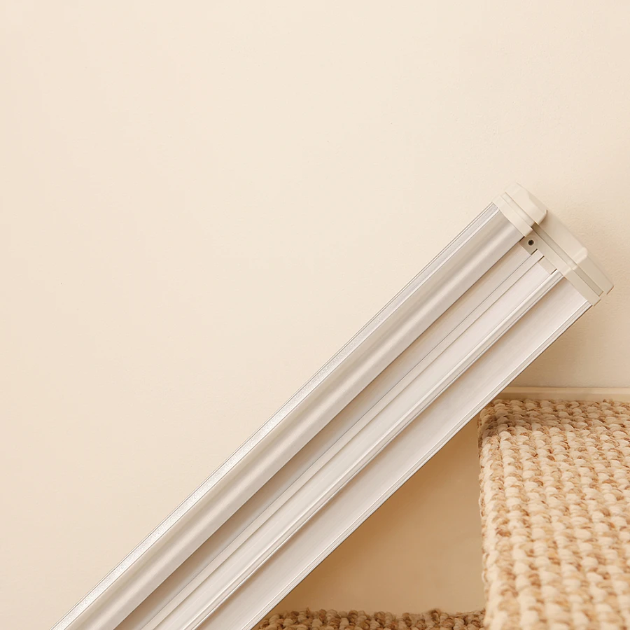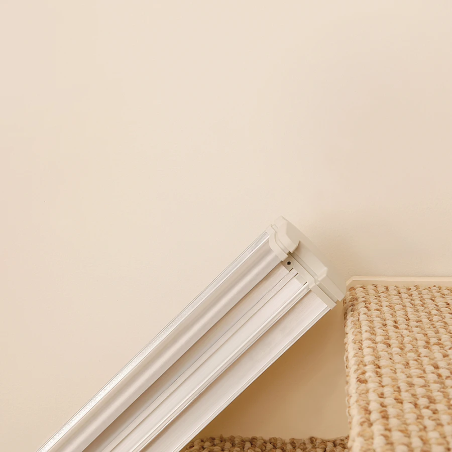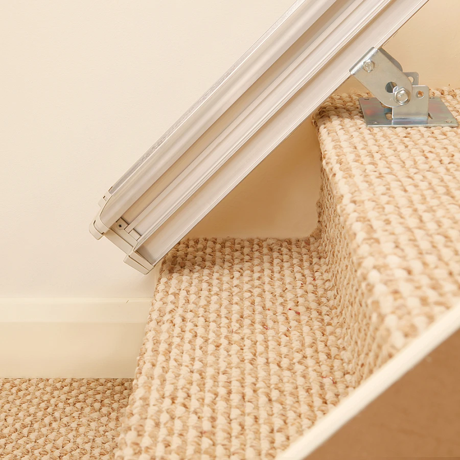 Движется по направляющим, установленным на стене, по внутренней или внешней стороне лестничного марша.