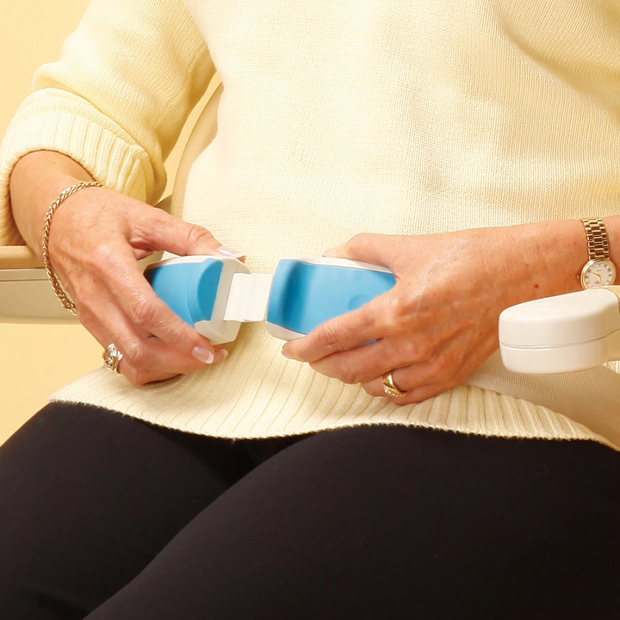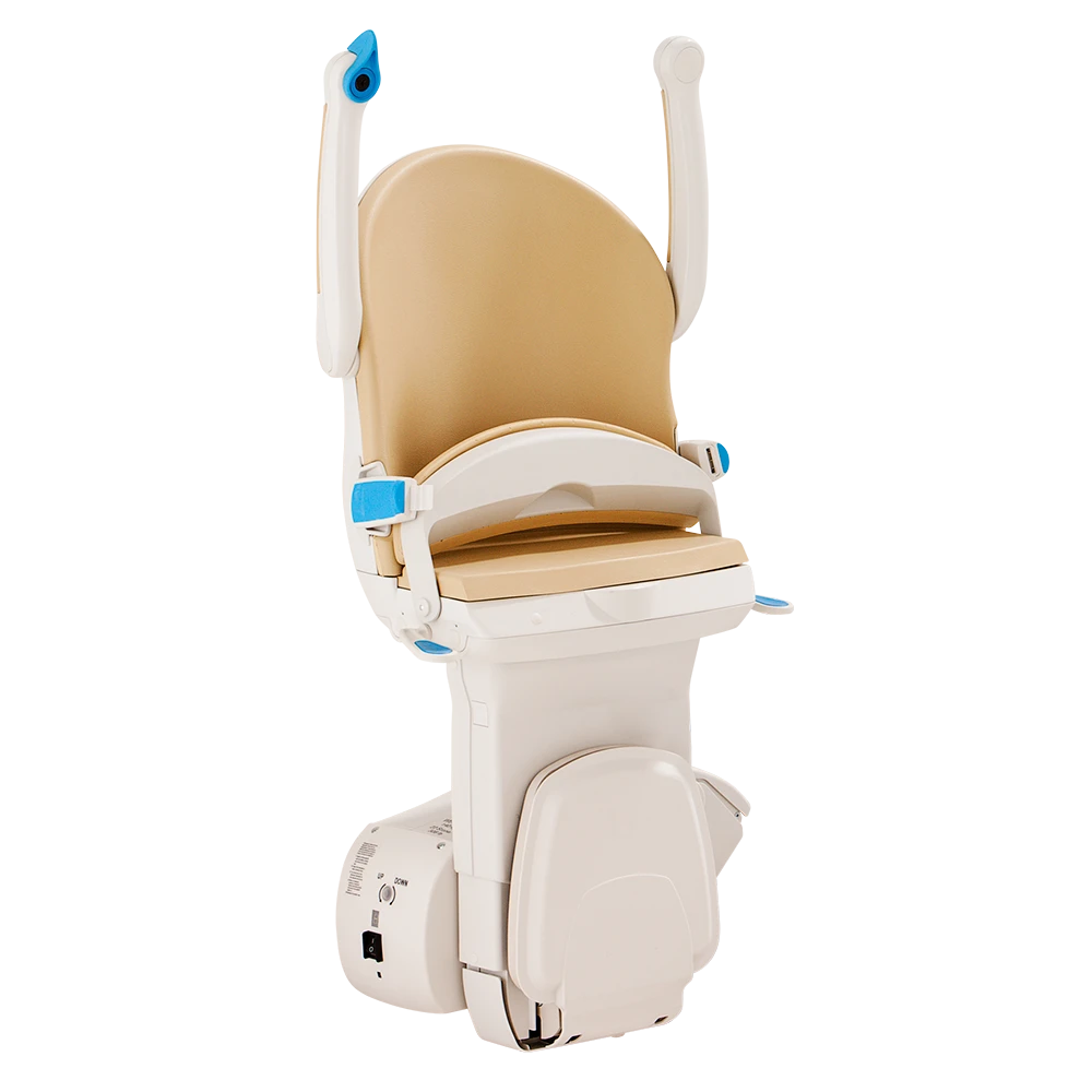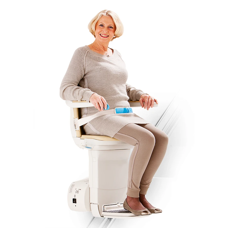 Оснащен датчиками, гарантирующими остановку кресла в случае появления препятствия на лестнице. Поясной ремень безопасности обеспечивает поддержку. Аварийный выключатель на подлокотнике мгновенно остановит подъемник при необходимости по желанию пользователя.