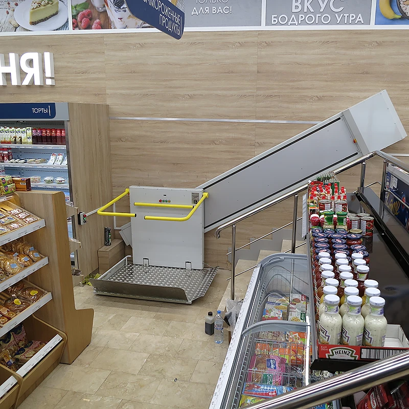 Прост в управлении. Пассажиру не требуется посторонняя помощь. Платформа с противоскользящим покрытием. Плавный пуск и остановка за счет частотного преобразователя.