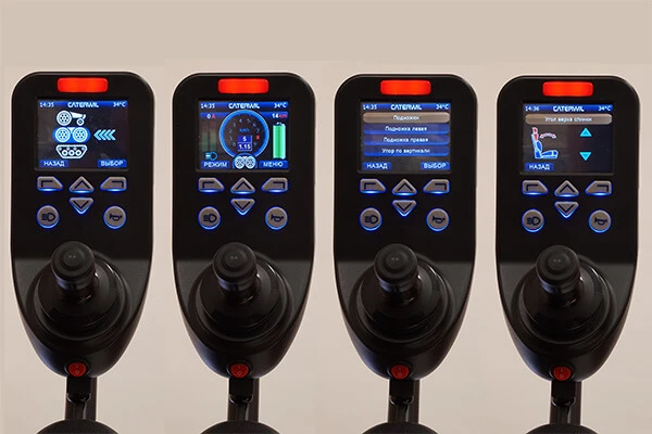 Контроль над всеми функциями кресла и подножек в GTS 4WD Lux осуществляется с помощью пульта управления. Регулировка производится нажатием кнопок Вверх и Вниз на пульте либо джойстиком.
