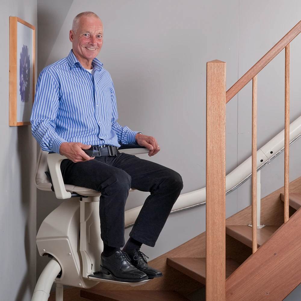 Кресельный подъемник ВАН ГОГ максимально компактен, его наличие в доме не создает помех при использовании лестницы другими людьми.