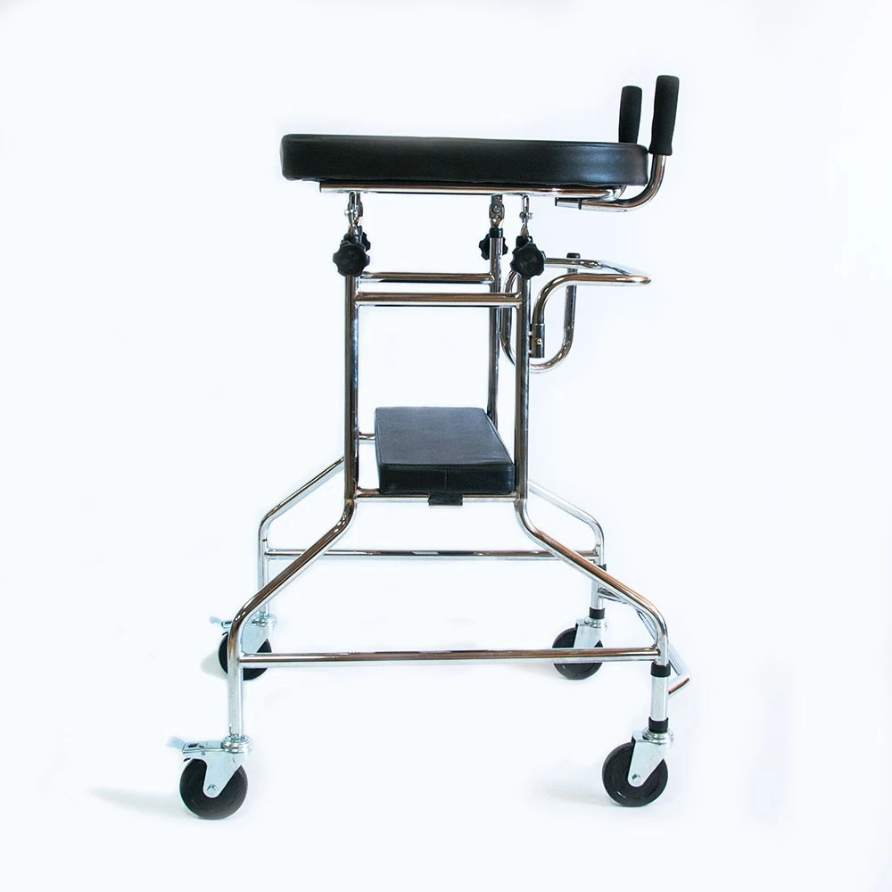 Опоры-ходунки используются для реабилитации инвалидов, обеспечивают надежную опору при передвижении людей с нарушением двигательных функций. Опоры-ходунки с U-образной подлокотной опорой регулируемой по высоте. Конструкция снабжена съемным сидением для отдыха. Модель оборудована четырьмя колесами с двумя тормозами. Впереди ходунка дополнительная опора с крючком для личных вещей. При ходьбе пациенту следует, опираясь на боковые опоры перекатывать ходунок вперед, сделать шаг.