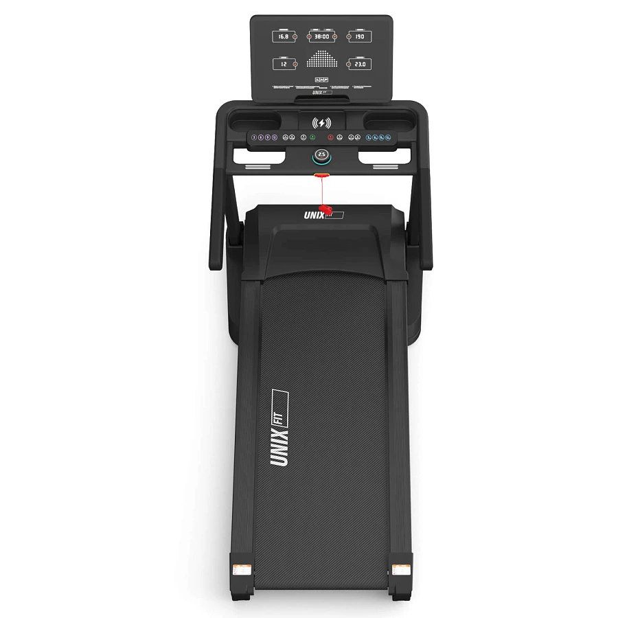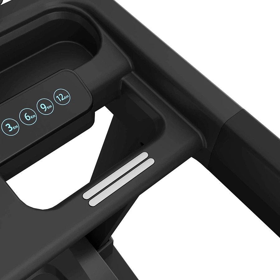| Особенности | дополнительная консоль с кнопками быстрого выбора скорости, угла наклона, старт/стоп, выбор программ, режимы умная кнопка-диммер с управлением: включение/выключение, увеличивается/уменьшается скорости и с отображением на дисплее: скорости, времени, расстояния, количество калорий, пульса, беспроводная зарядка для гаджетов |