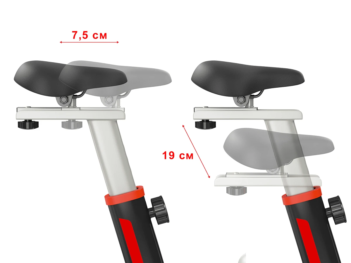 - Мягкое сидение анатомической формы регулируется в вертикальной и горизонтальной плоскости