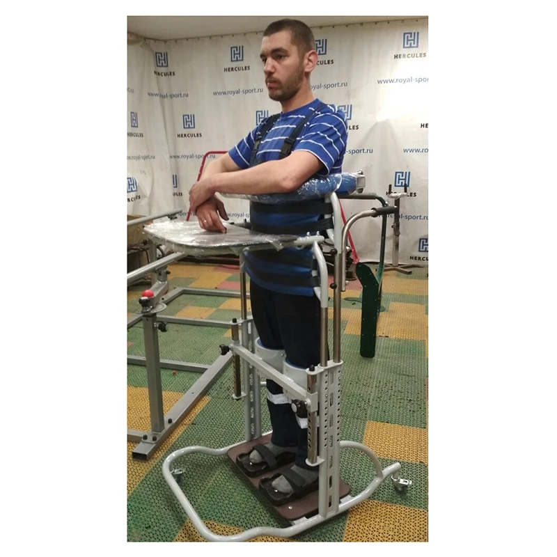 Данное устройство позволяет пользователю принимать вертикальное положение, не прилагая значительных усилий. Главное преимущество модели – возможность регулировки высоты, что делает ее максимально удобной и подходящей для людей разного роста. Кроме того, предусмотрена фиксация ног и коленных суставов, обеспечивая дополнительную устойчивость и безопасность.