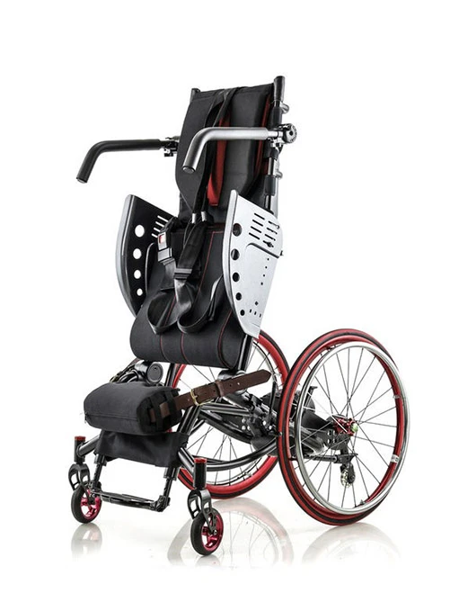 Дополнительная функция вертикализации предоставляет возможность изменения положения сидения от вертикального до горизонтального, что помогает инвалиду самостоятельно переходить из положения сидя в положение стоя.